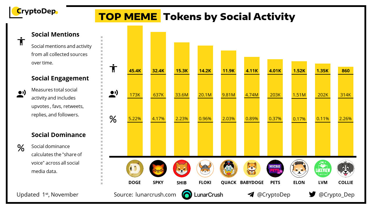 Social Engagement measures total social activity and includes upvotes, favs, retweets, replies, and followers.