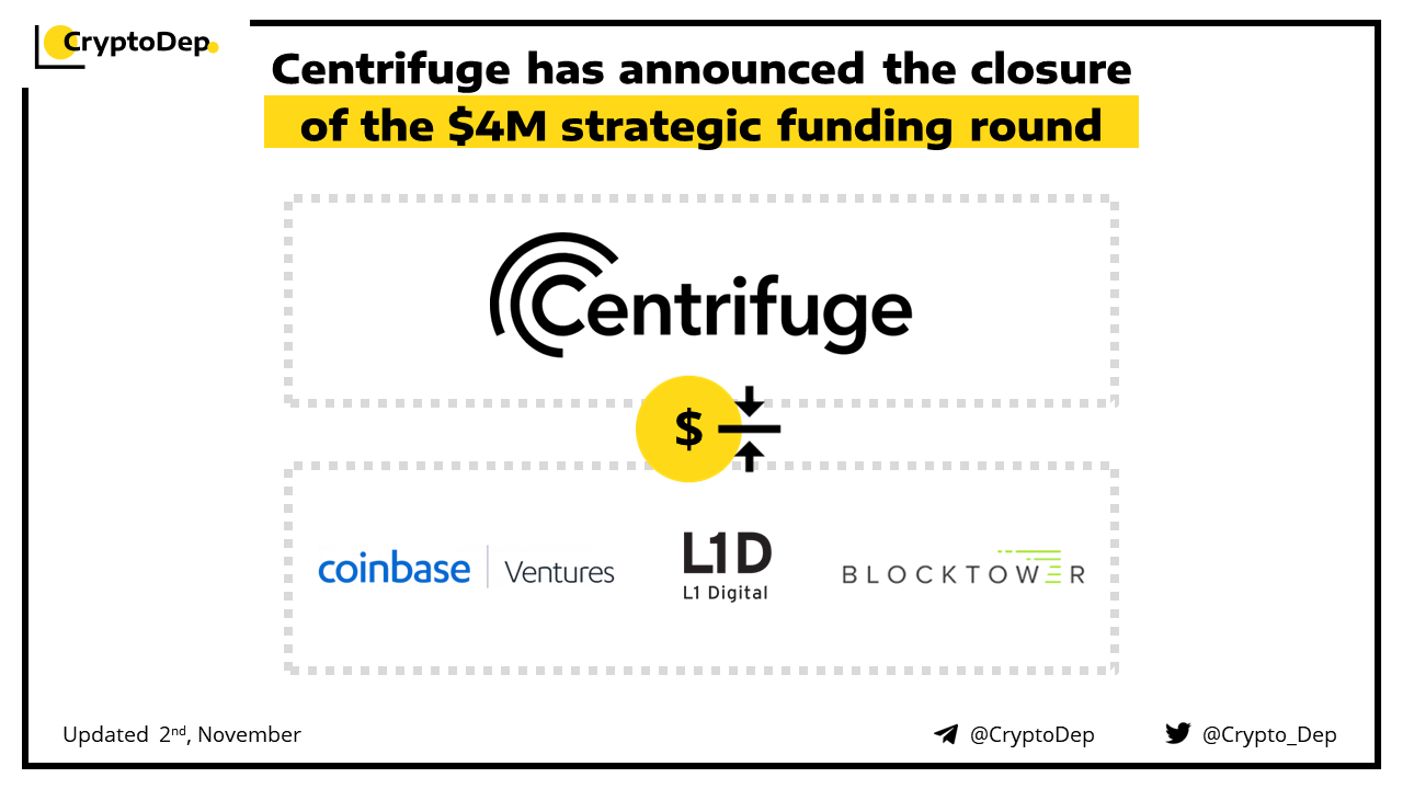 Centrifuge, a decentralized finance protocol has raised $4M in the strategic funding round. Coinbase Ventures, BlockTower, Scytale, and L1 Digital have participated in the investment. Centrifuge will leverage Polkadotβs trustless Snowfork bridge as well as XCM to connect to parachains.