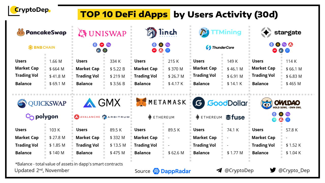 ββTOP 10 DeFI dApps by Users Activity (30d)