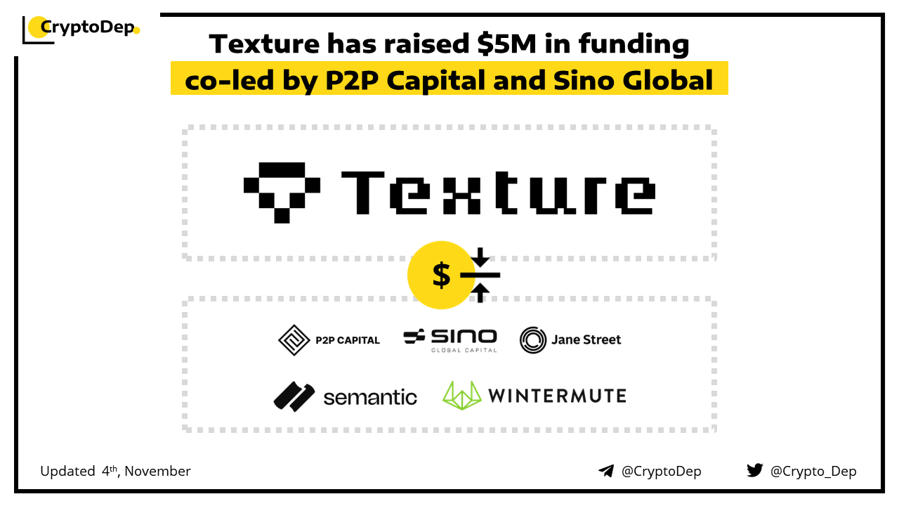 Texture, a Solana yield manager, has closed its $5M investment round that was co-led by P2P Capital and Sino Global. Wintermute, Semantic Ventures, and Jane Street Capital have also participated in the round. Texture is a DeFi platform running on the Solana blockchain, and is now live in private beta testing.