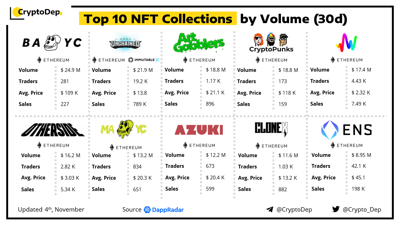Top 10 NFT Collections by Volume (30d)