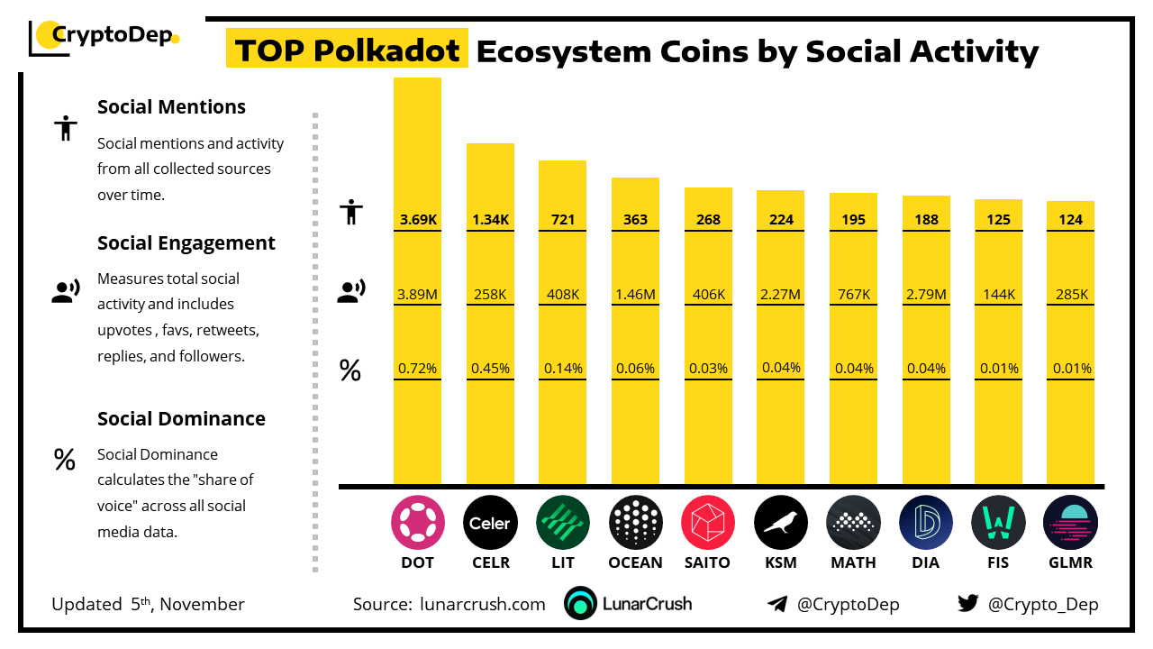 TOP Polkadot Ecosystem Coins by Social Activity