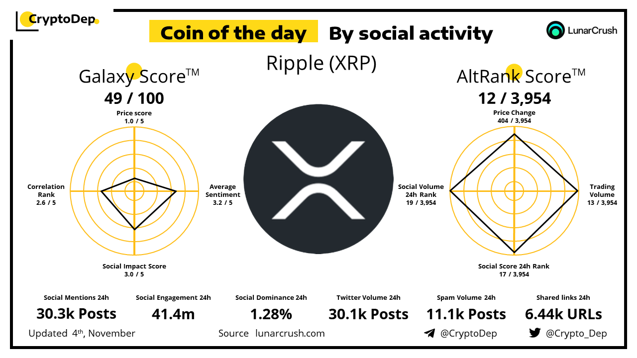 Coin of the day by social activity - Ripple (XRP).