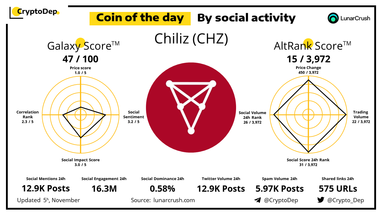 Coin of the day by social activity - Chiliz (CHZ).