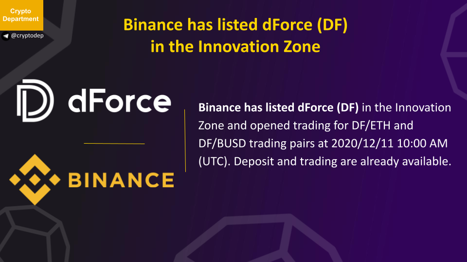 Binance has listed dForce (DF) in the Innovation Zone
