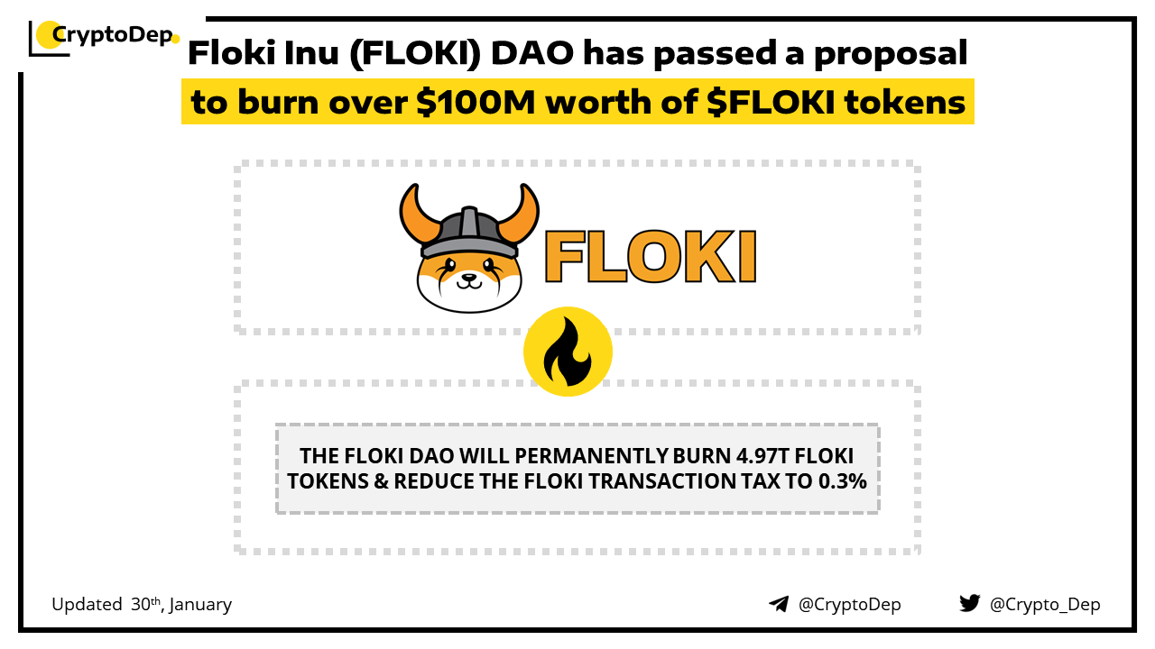 ββFloki Inu (FLOKI) DAO has passed a proposal to burn over $100M worth of $FLOKI tokens