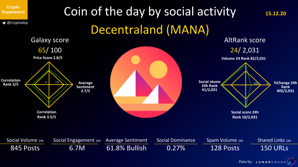 ββCoin of the day by social activity - Decentraland (MANA).
