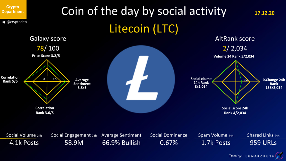 ββCoin of the day by social activity - Litecoin (LTC).