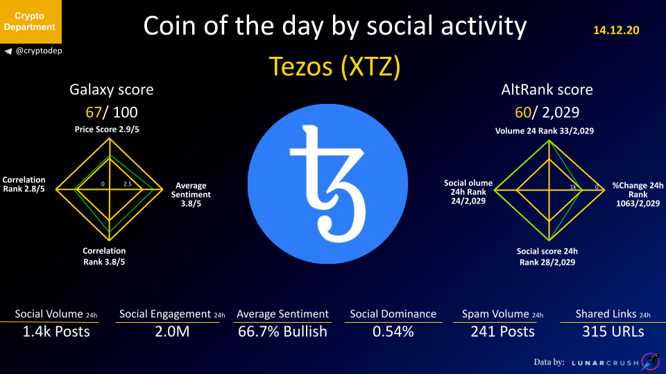 ββCoin of the day by social activity - Tezos (XTZ).