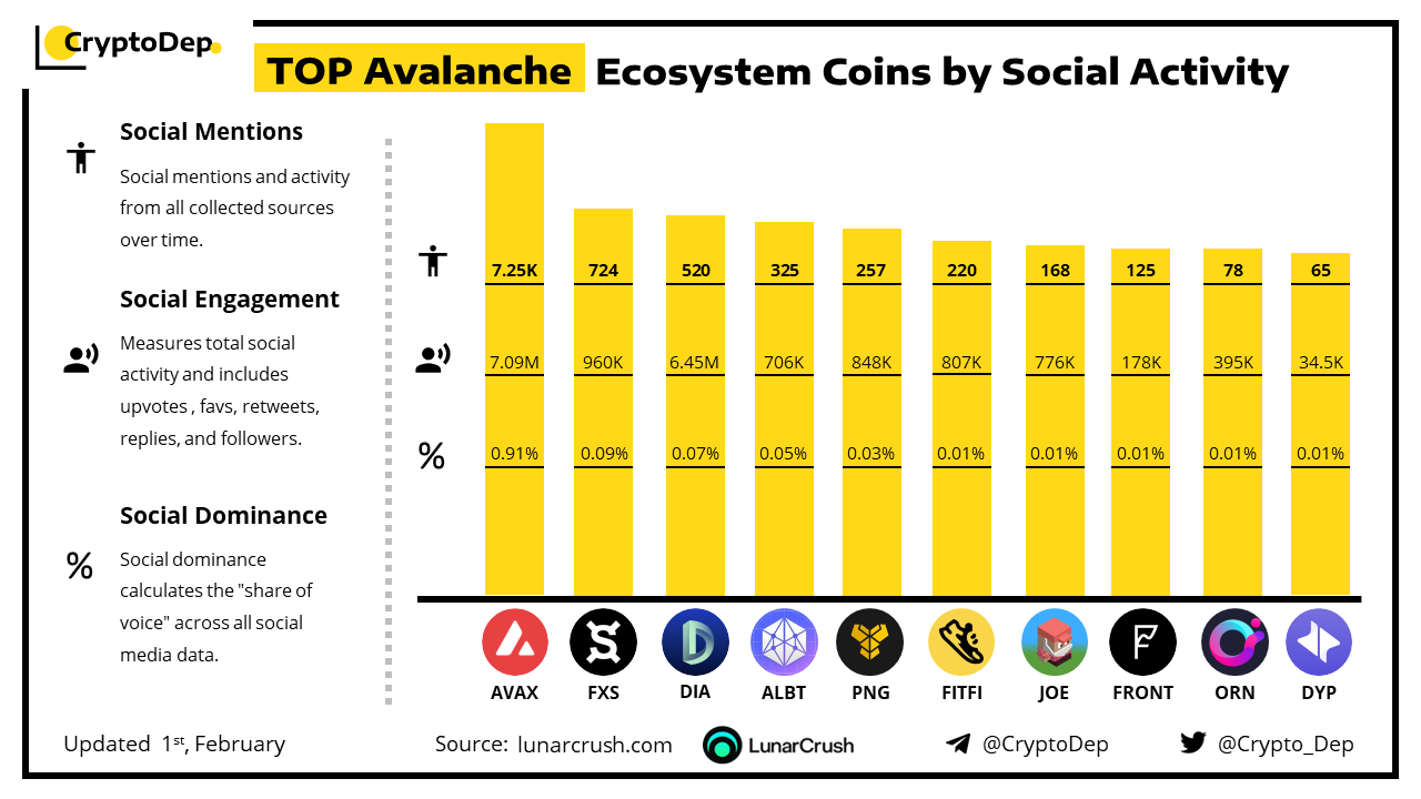ββTOP Avalanche Ecosystem Coins by Social Activity