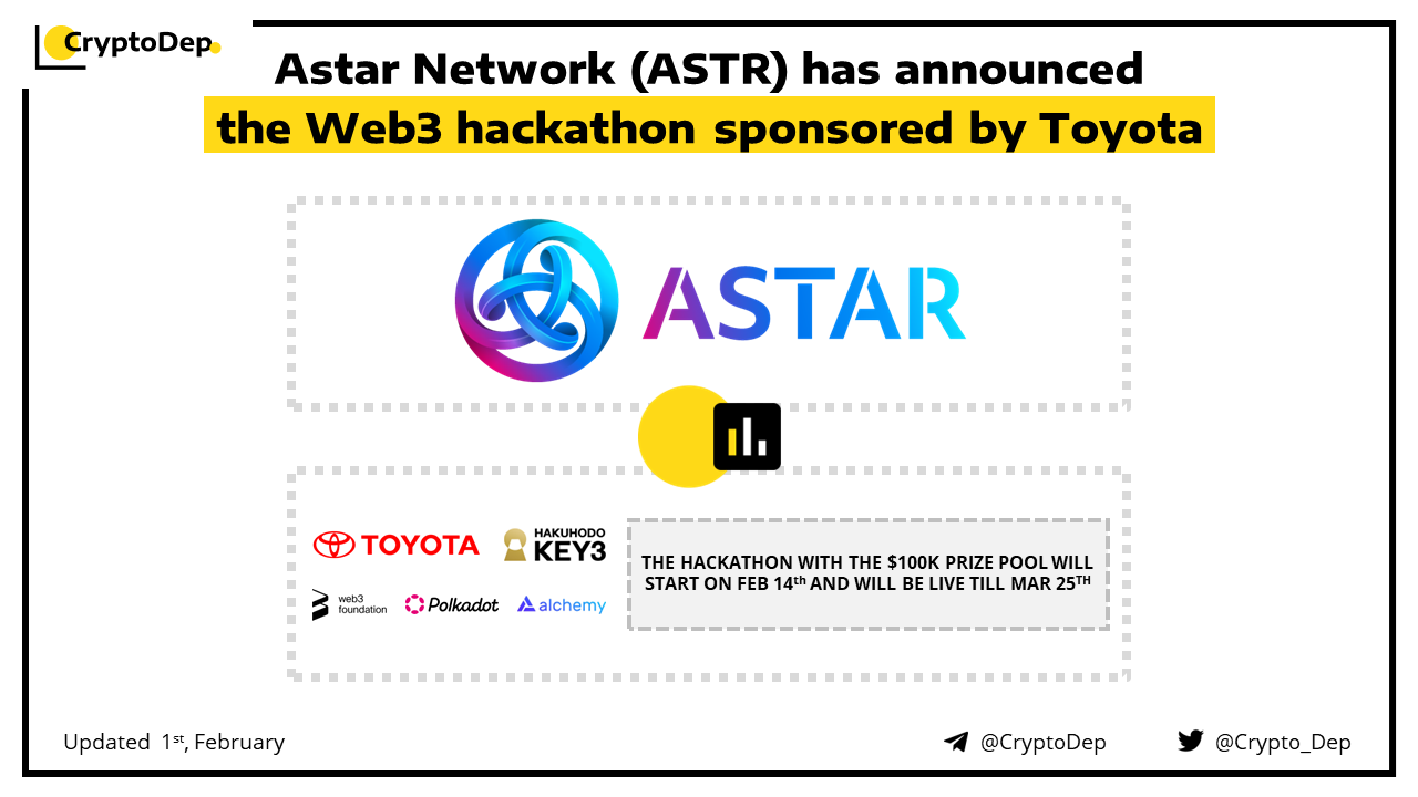 ββAstar Network (ASTR) has announced the Web3 hackathon sponsored by Toyota