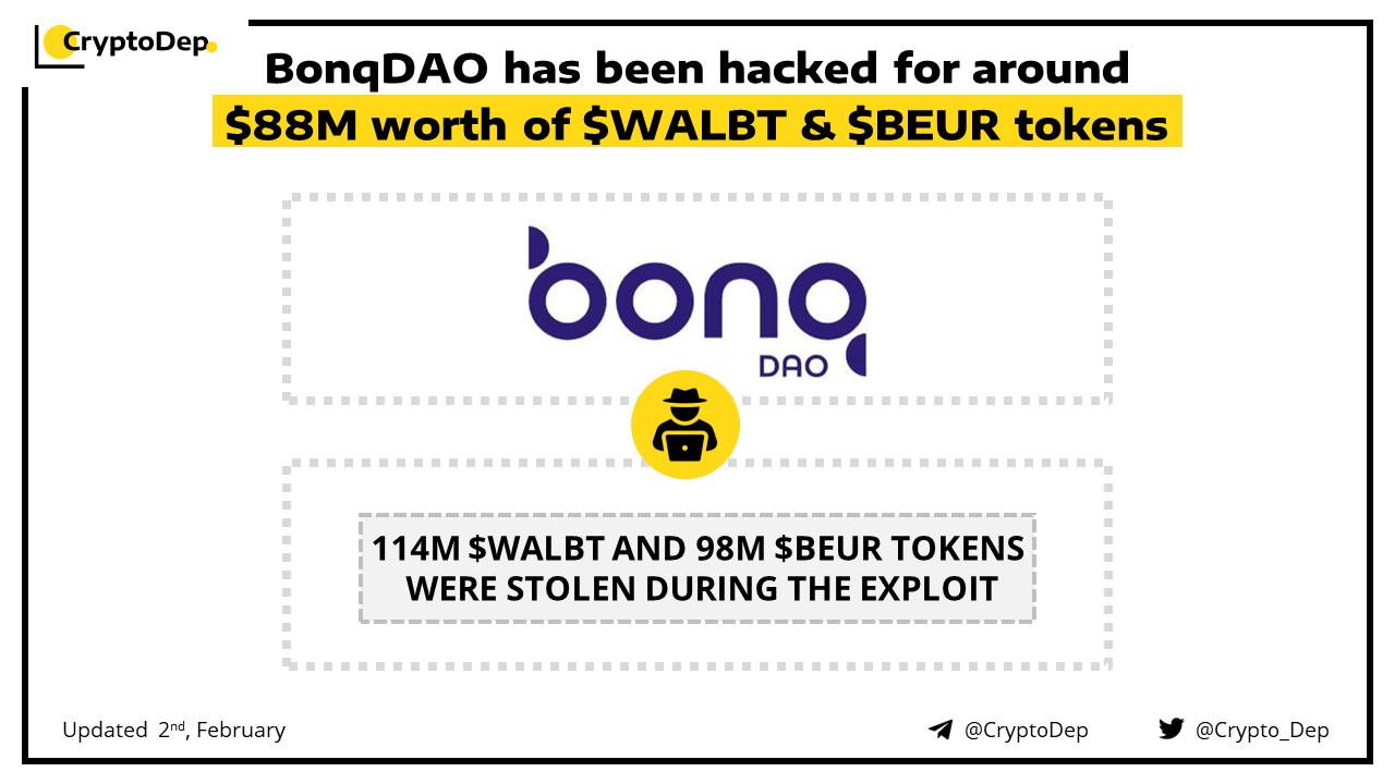 ββBonqDAO has been hacked for around $88M worth of $WALBT & $BEUR tokens