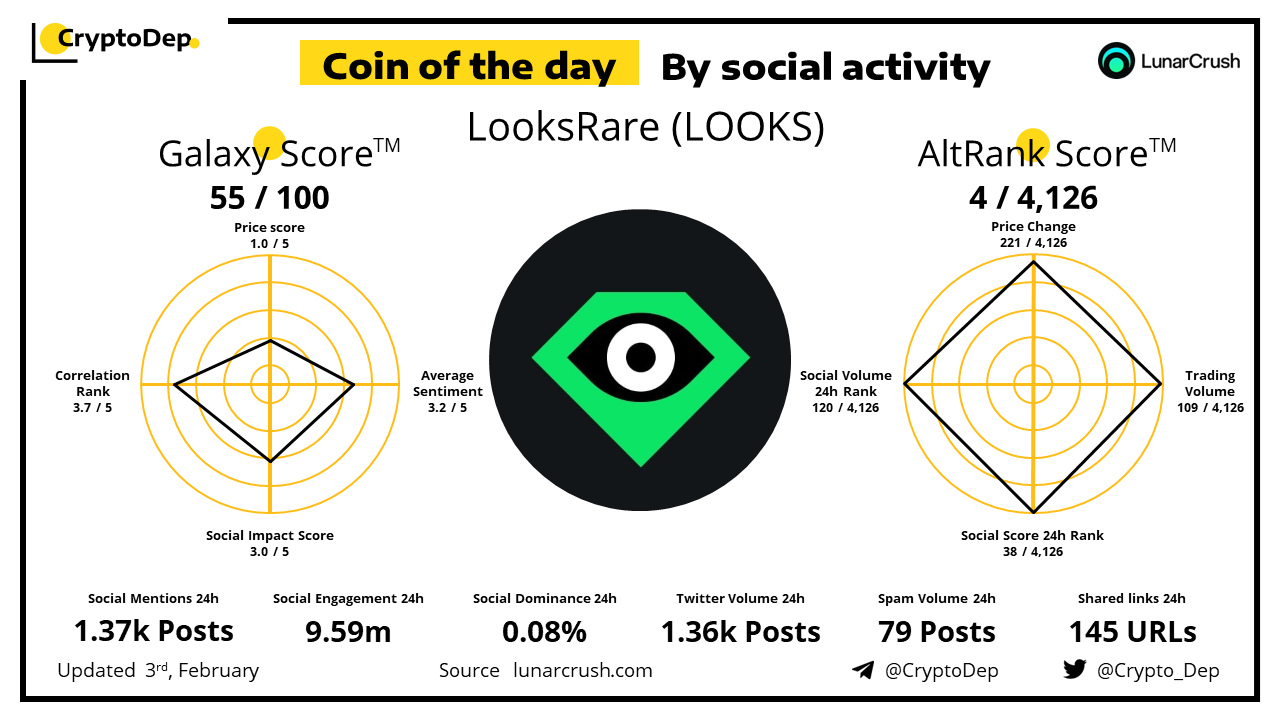 ββCoin of the day by social activity - LooksRare (LOOKS).