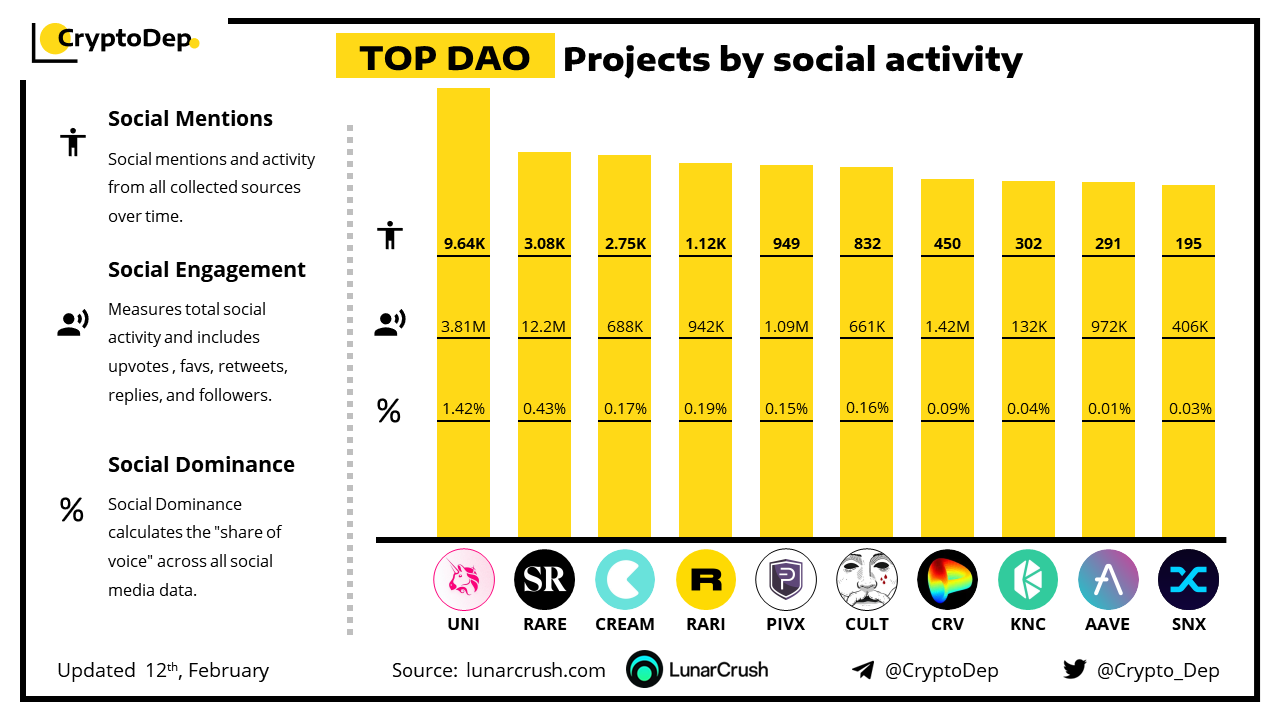 Social Engagement measures total social activity and includes upvotes, favs,retweets, replies, and followers.
