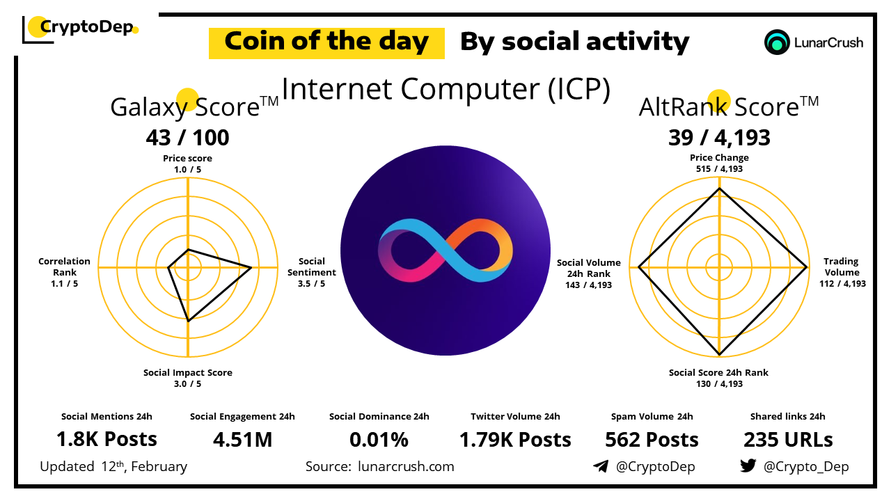 โโCoin of the day by social activity - Internet Computer (ICP).