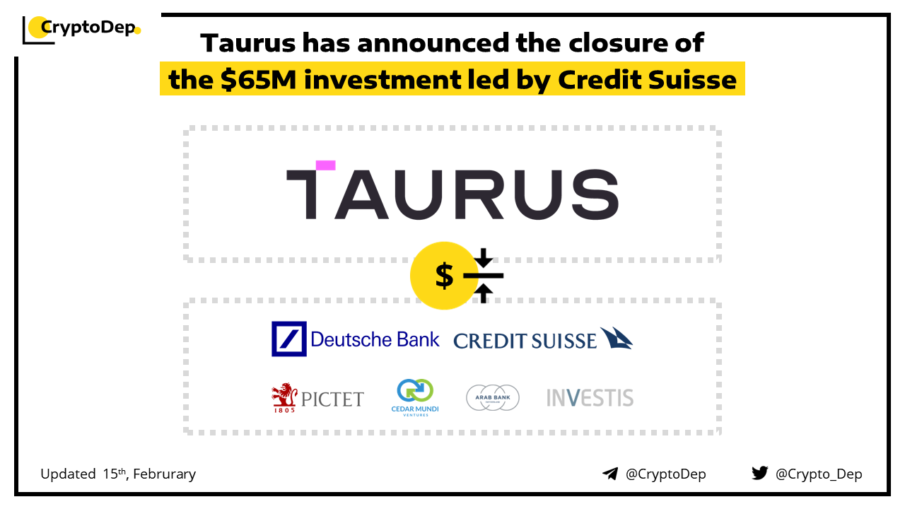 Taurus, a digital asset infrastructure provider for financial institutions in Europe, has raised $65M in the Series B funding round led by Credit Suisse. Additional round participants included Deutsche Bank, Pictet Group, Cedar Mundi Ventures, Arab Bank Switzerland and Investis. Taurus will use fresh funds to further develop its digital asset platform and fuel international expansion.