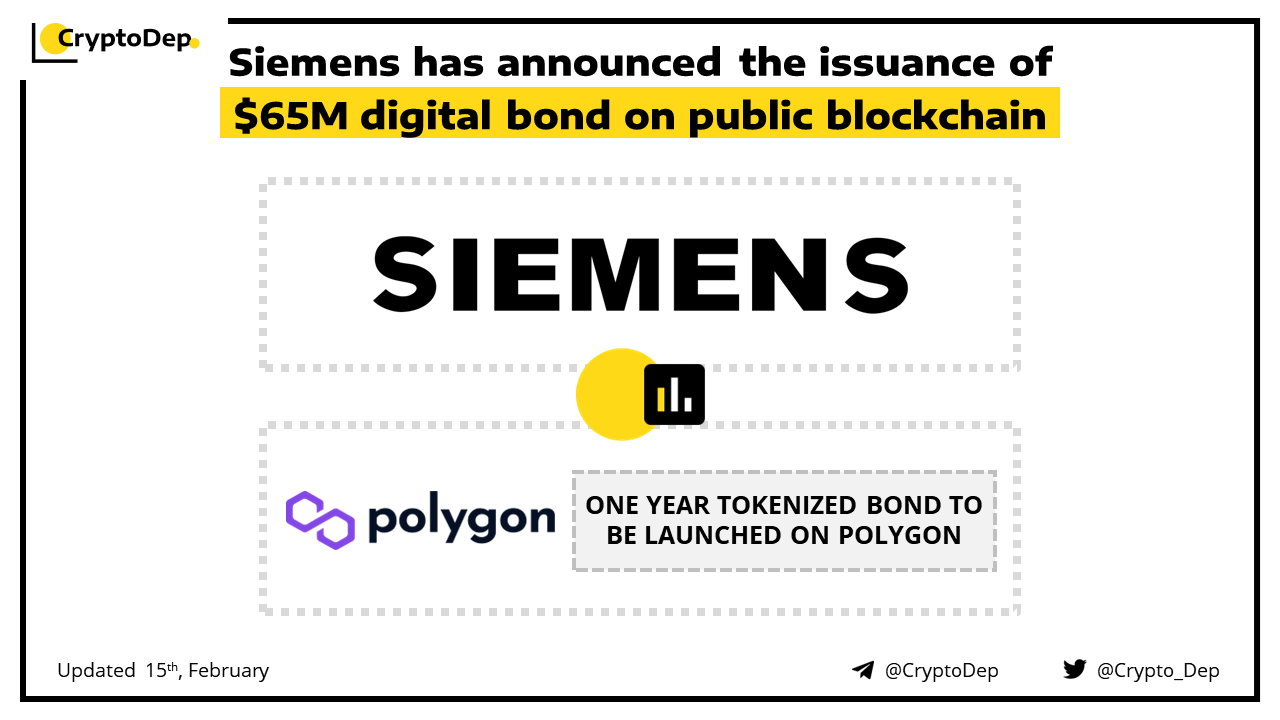 ββSiemens has announced the issuance of $65M digital bond on public blockchain