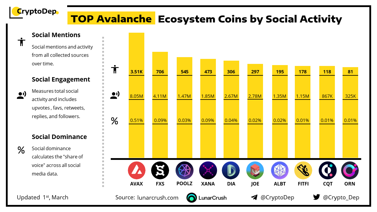 TOP Avalanche Ecosystem Coins by Social Activity