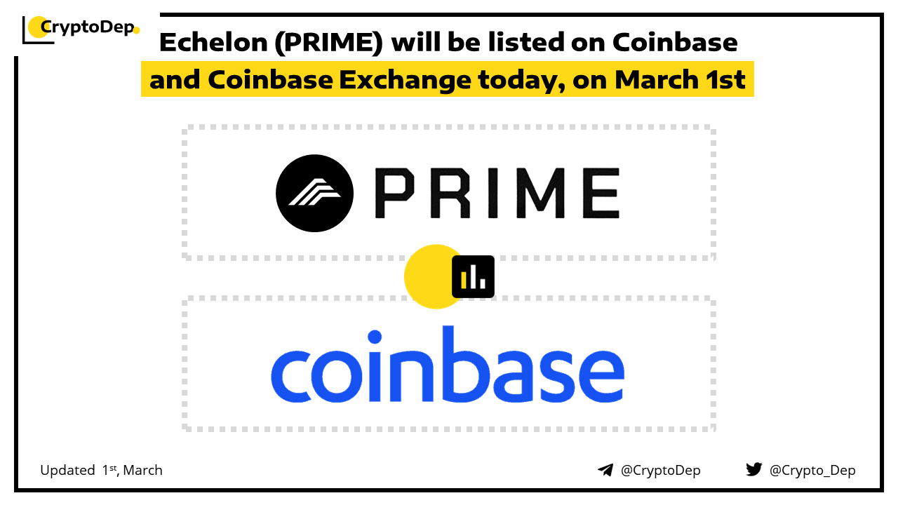 Echelon (PRIME) will be listed on Coinbase & Coinbase Exchange today, on March 1st
