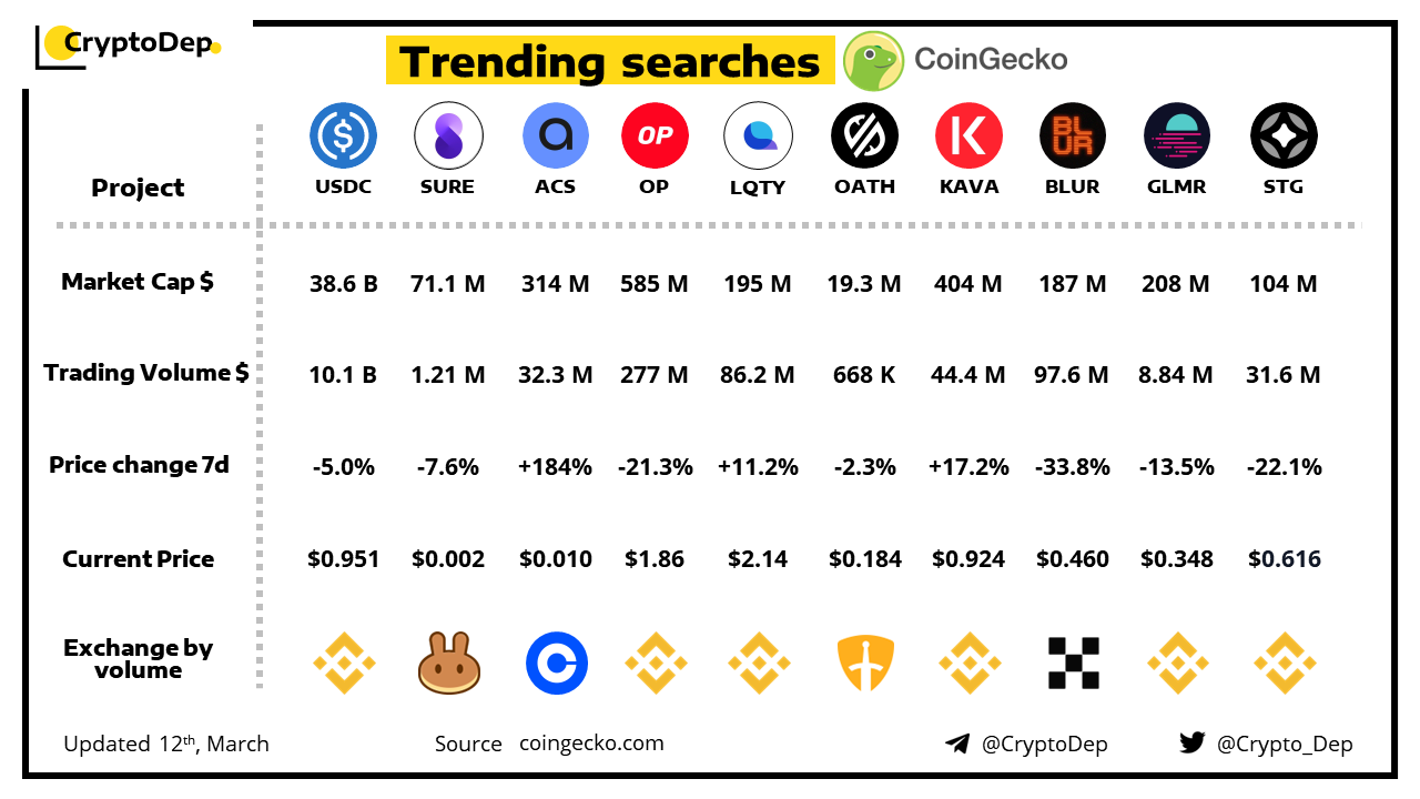 The recent collapse of Silicon Valley Bank had affected Circle's $USDC stablecoin, resulting in its de-peg. The firm behind $USDC has disclosed that it had $3.3B of the stablecoin collateral held at Silicon Valley Bank. At the pick of the fall $USDC reached 0.87$ and now remains at the price of 0.94$.