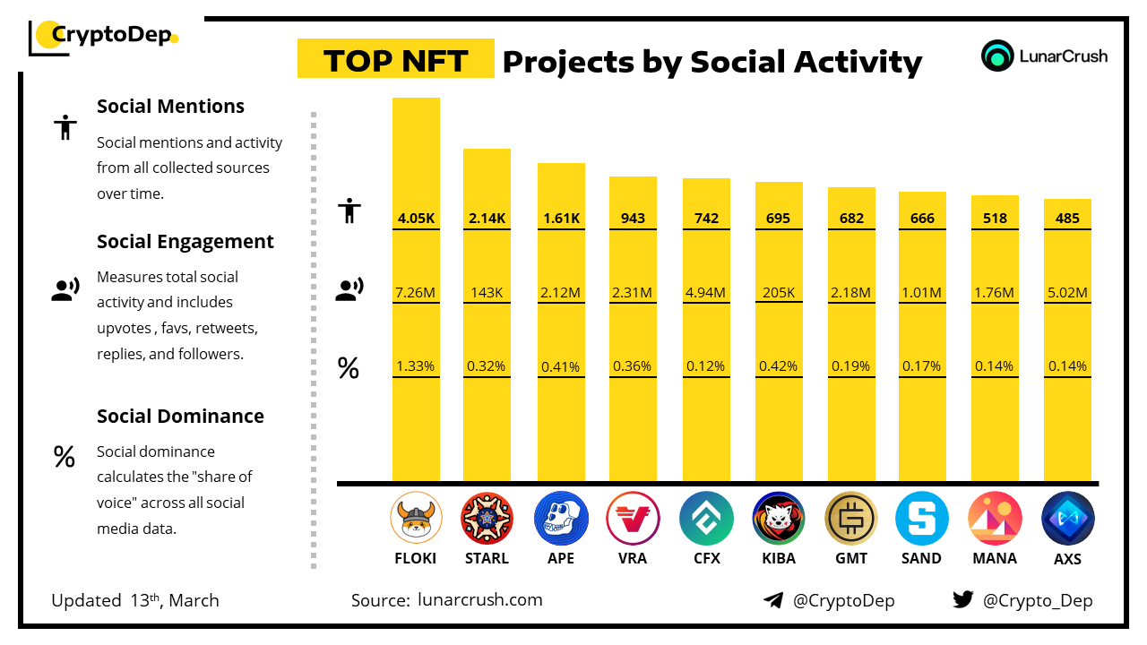 Social Engagement measures total social activity and includes upvotes, favs, retweets, replies, and followers.