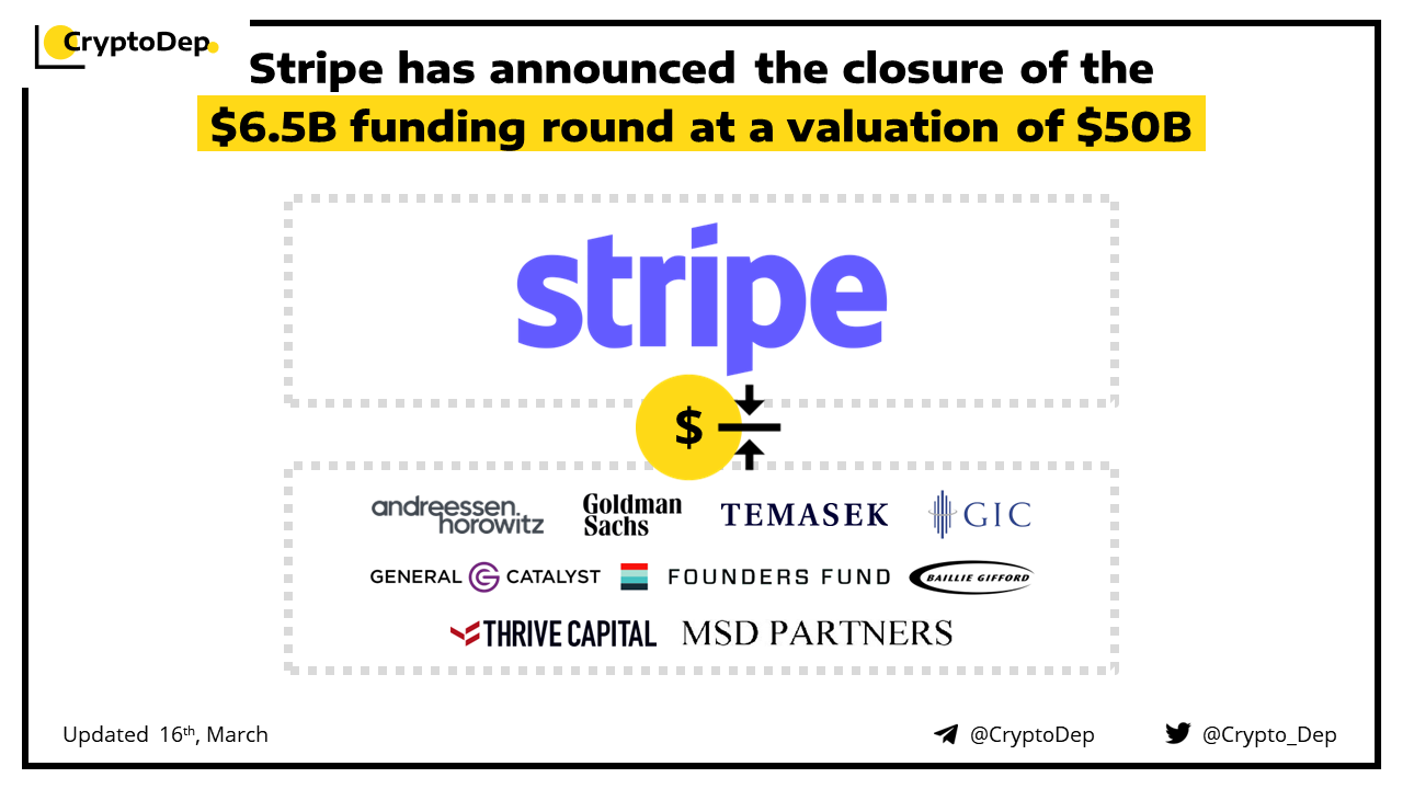 ββStripe has announced the closure of the $6.5B funding round at a valuation of $50B