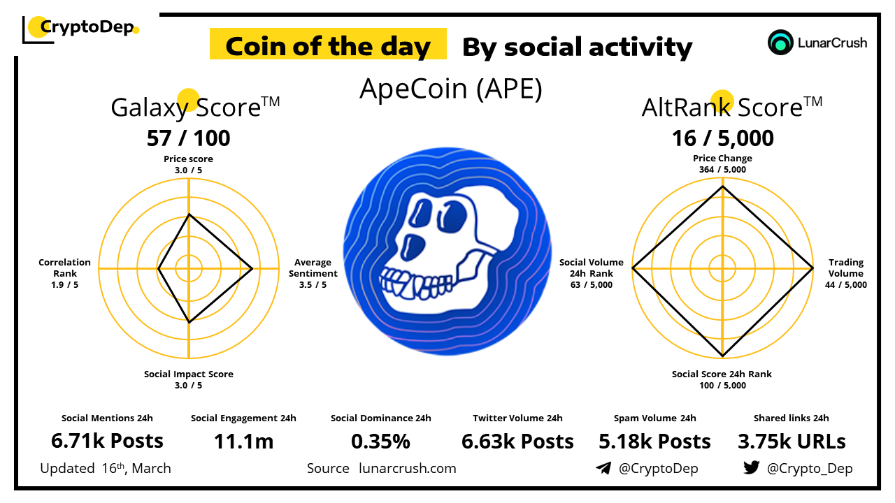 ββCoin of the day by social activity - ApeCoin (APE).