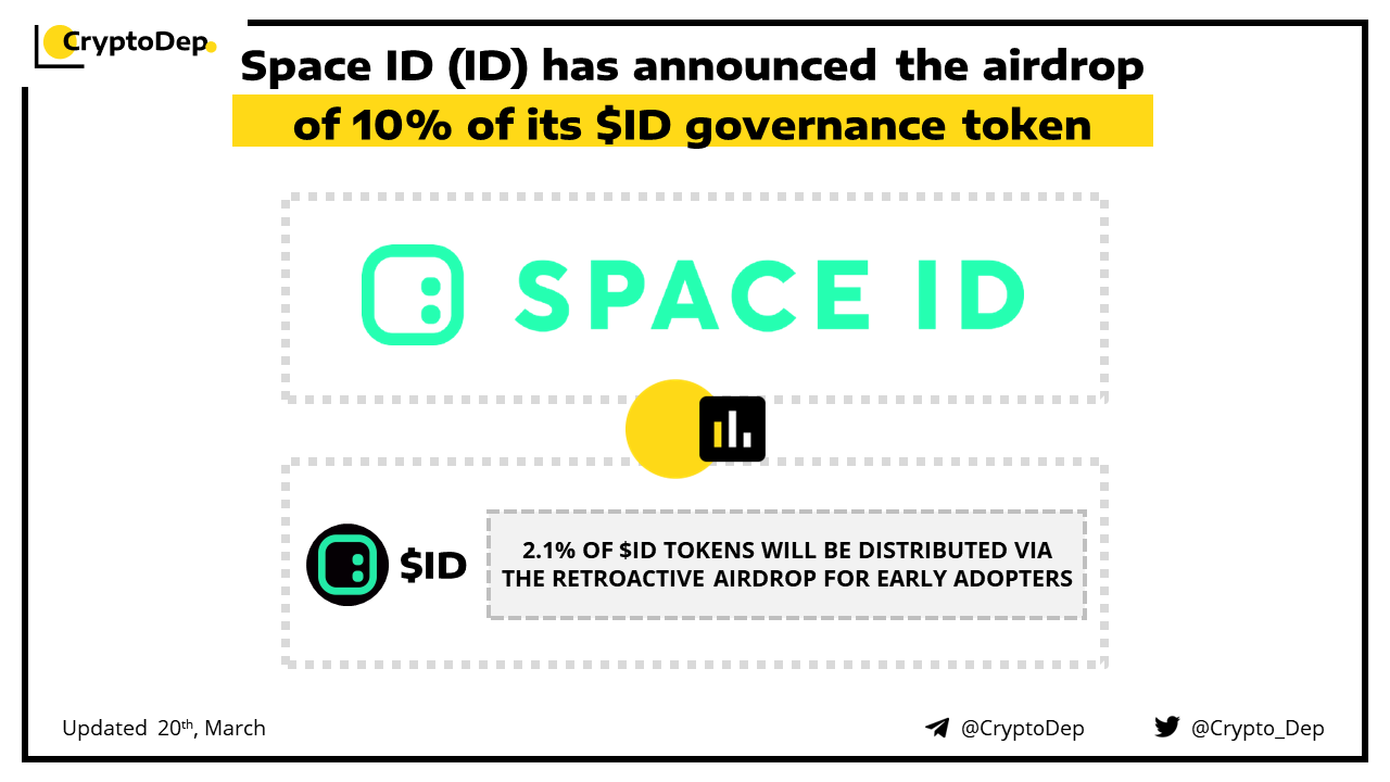 Space ID (ID) has announced the airdrop of 10% of its $ID governance token
