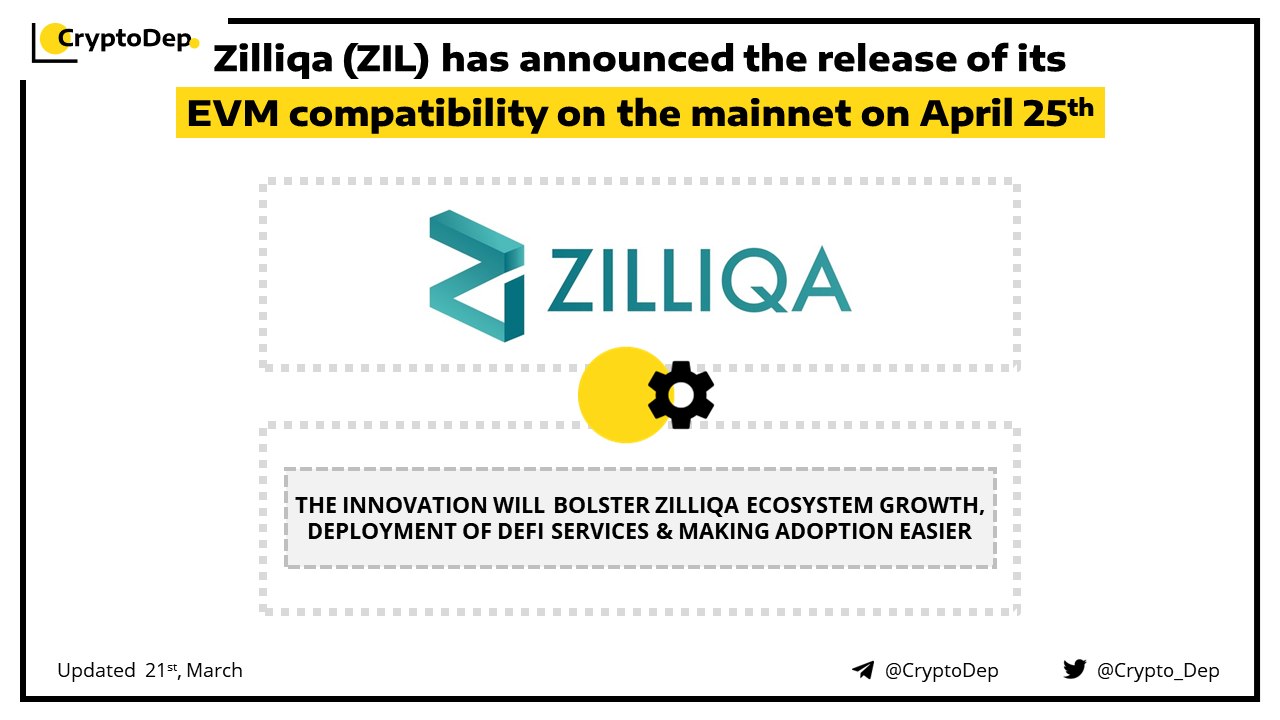 ββZilliqa (ZIL) has announced the release of its EVM compatibility on the mainnet on April 25th