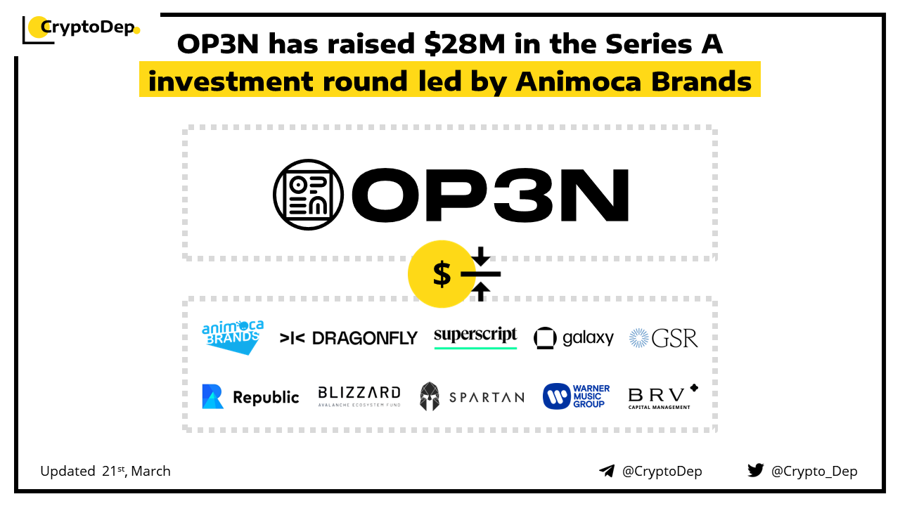 ββOP3N has raised $28M in the Series A investment round led by Animoca Brands