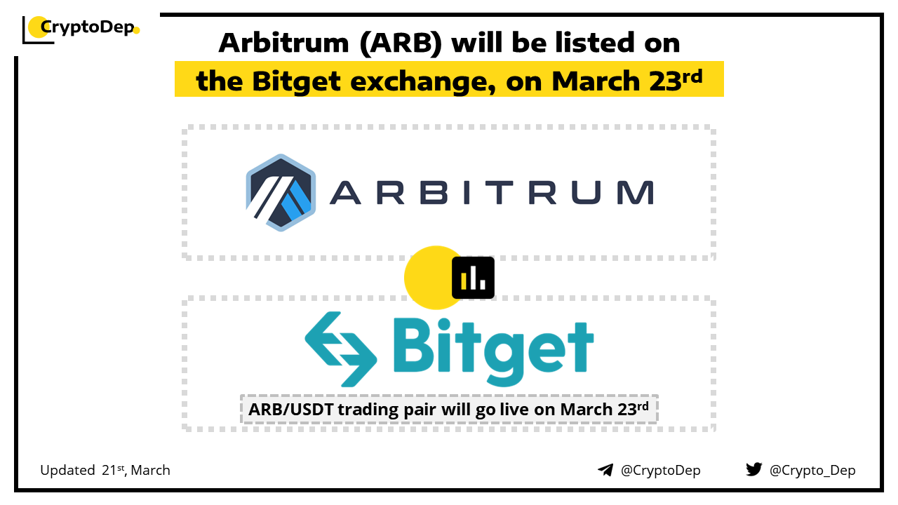 ββArbitrum (ARB) will be listed on the Bitget exchange, on March 23rd