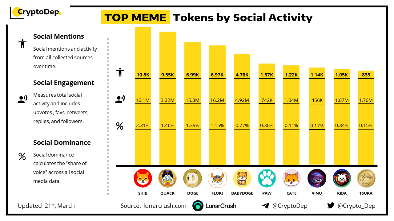 Social Engagement measures total social activity and includes upvotes, favs, retweets, replies, and followers.