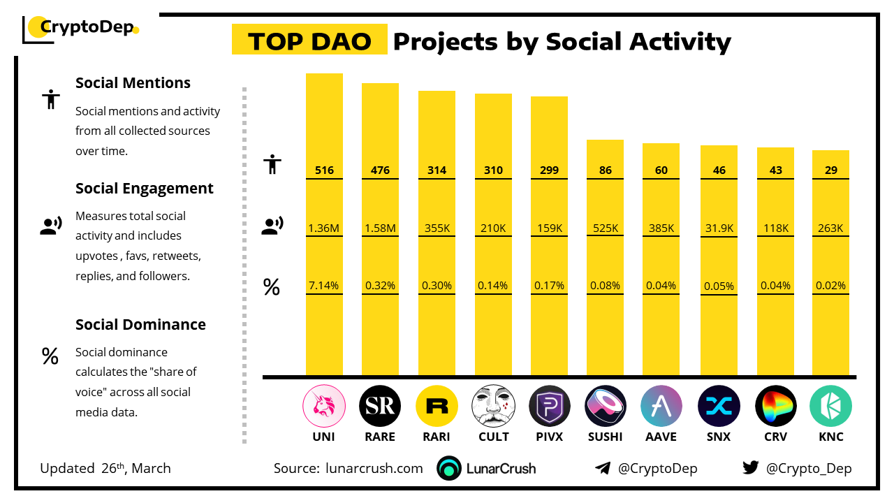 Social Engagement measures total social activity and includes upvotes, favs,retweets, replies, and followers.