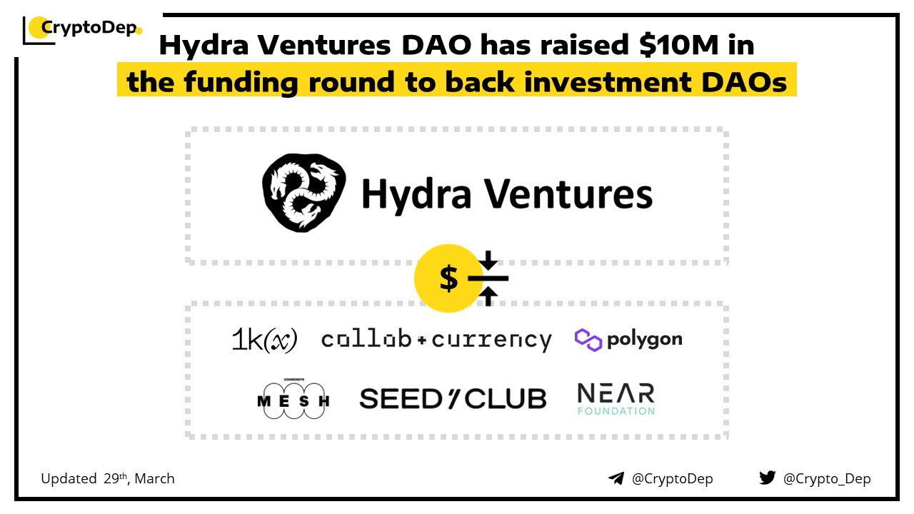 ββHydra Ventures DAO has raised $10M in the funding round to back investment DAOs