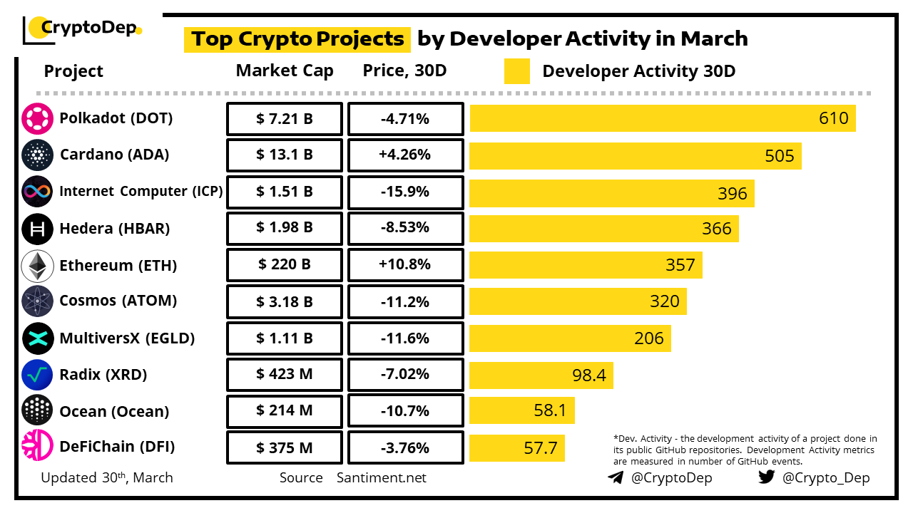 ββTop Crypto Projects by Developer Activity in March