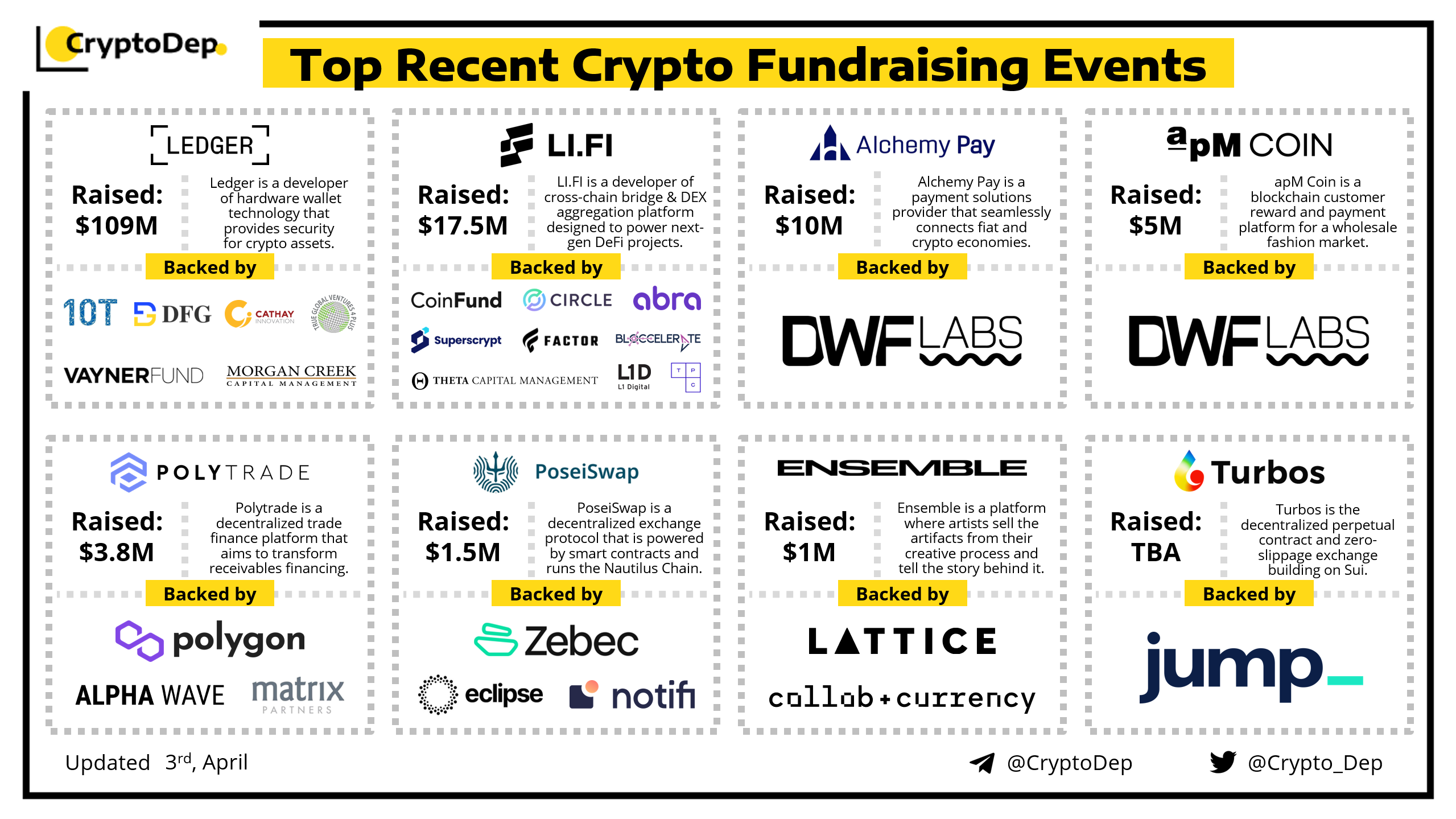 We are excited to present a list of some recent crypto fundraising events, backed by well-known investors such as CoinFund, Circle Ventures, Jump Crypto, Collab+Currency, 10T Fund, DWF Labs, Lattice, Eclipse, Morgan Creek Capital, Polygon, Zebec, and others. Let's take a look!