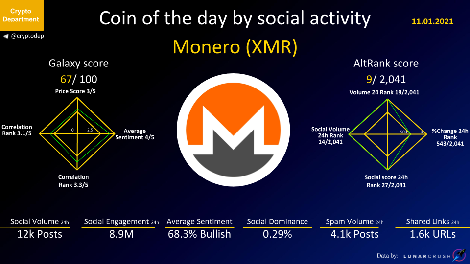 ββCoin of the day by social activity - Monero (XMR).