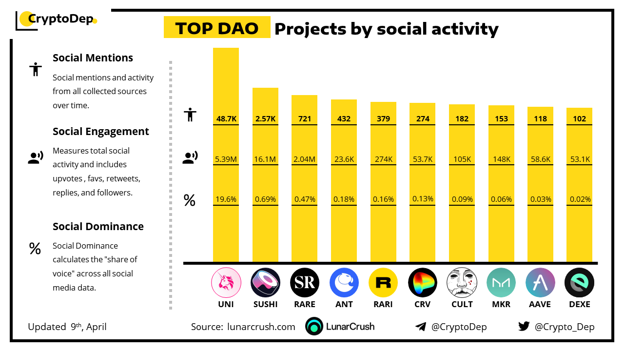 Social Engagement measures total social activity and includes upvotes, favs,retweets, replies, and followers.