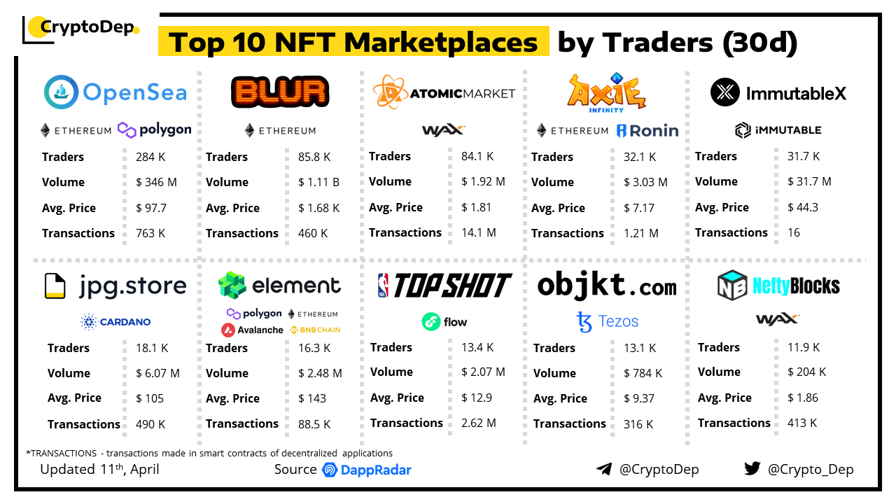 An NFT marketplace is a digital platform for buying and selling NFTs. Let's take a look at some of the best-performed NFT marketplaces by the number of traders in the last 30 days, according to the data from DappRadar.