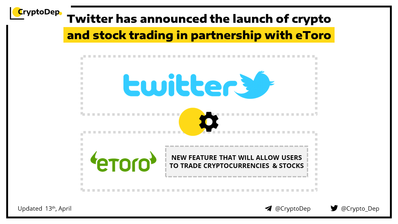 ββTwitter has announced the launch of crypto and stock trading in partnership with eToro