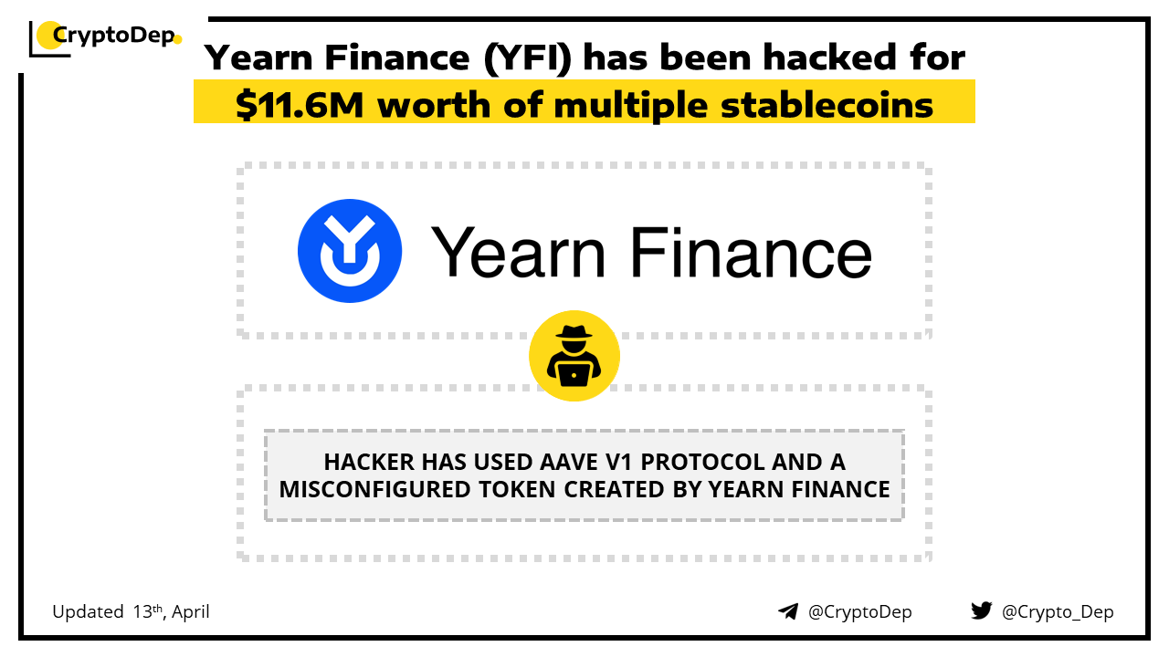 ββYearn Finance (YFI) has been hacked for $11.6M worth of multiple stablecoins