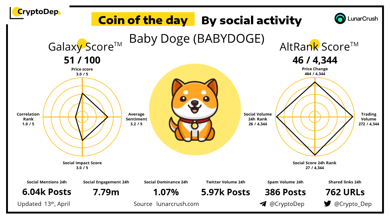 ββCoin of the day by social activity - Baby Doge (BABYDOGE).