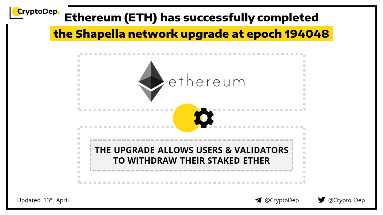 ββEthereum (ETH) has successfully completed the Shapella network upgrade at epoch 194048
