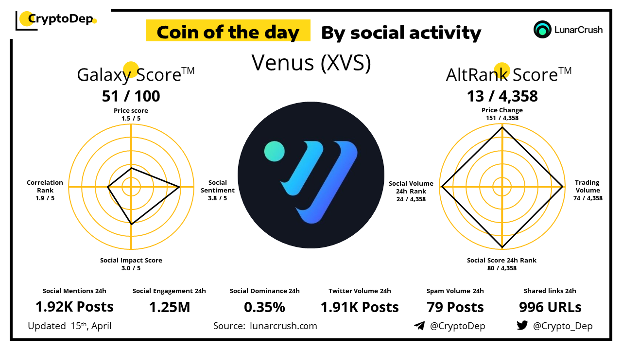 ββCoin of the day by social activity - Venus (XVS).