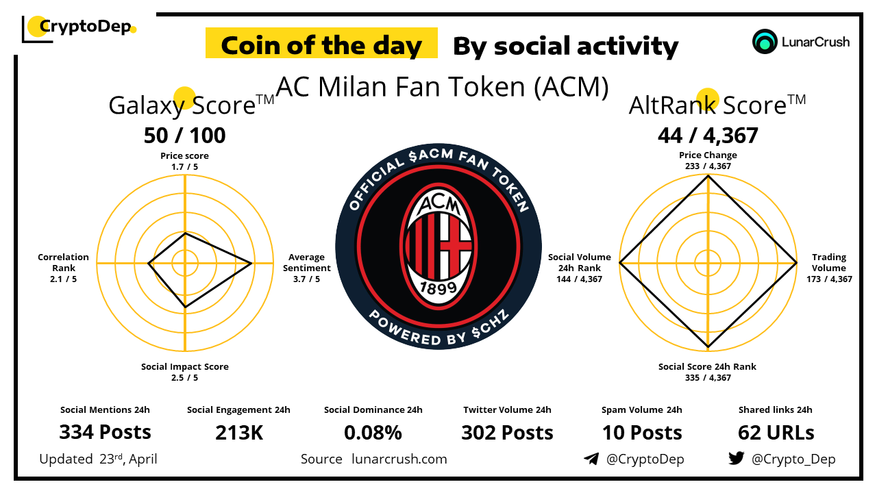 Coin of the day by social activity - AC Milan Fan Token (ACM).