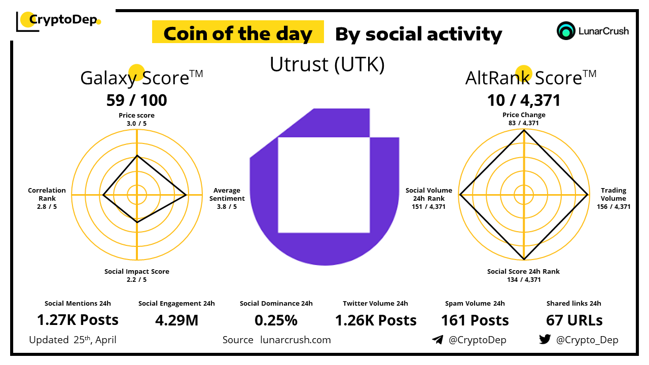 ββCoin of the day by social activity - Utrust (UTK).