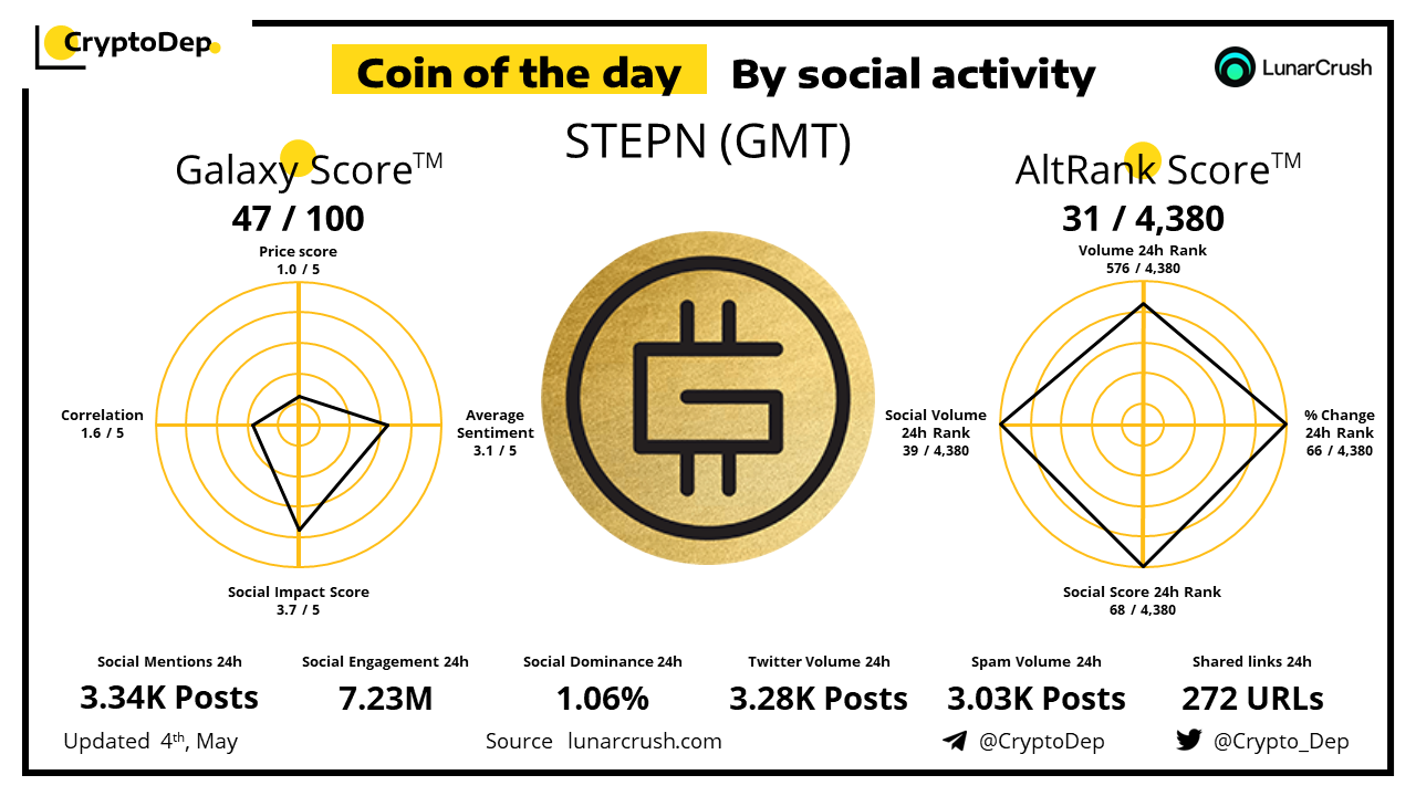 ββCoin of the day by social activity - STEPN (GMT).