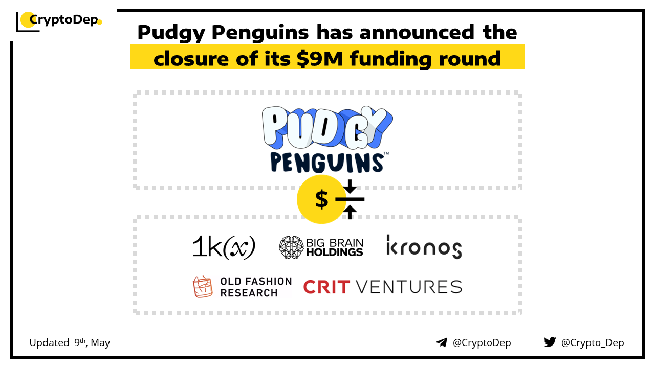 ββPudgy Penguins has announced the closure of its $9M funding round