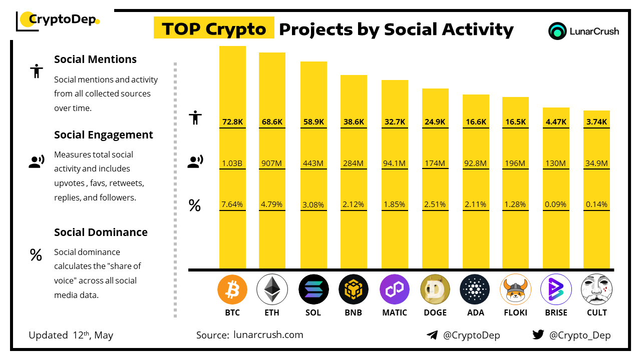 Social Engagement measures total social activity and includes upvotes, favs,retweets, replies, and followers.