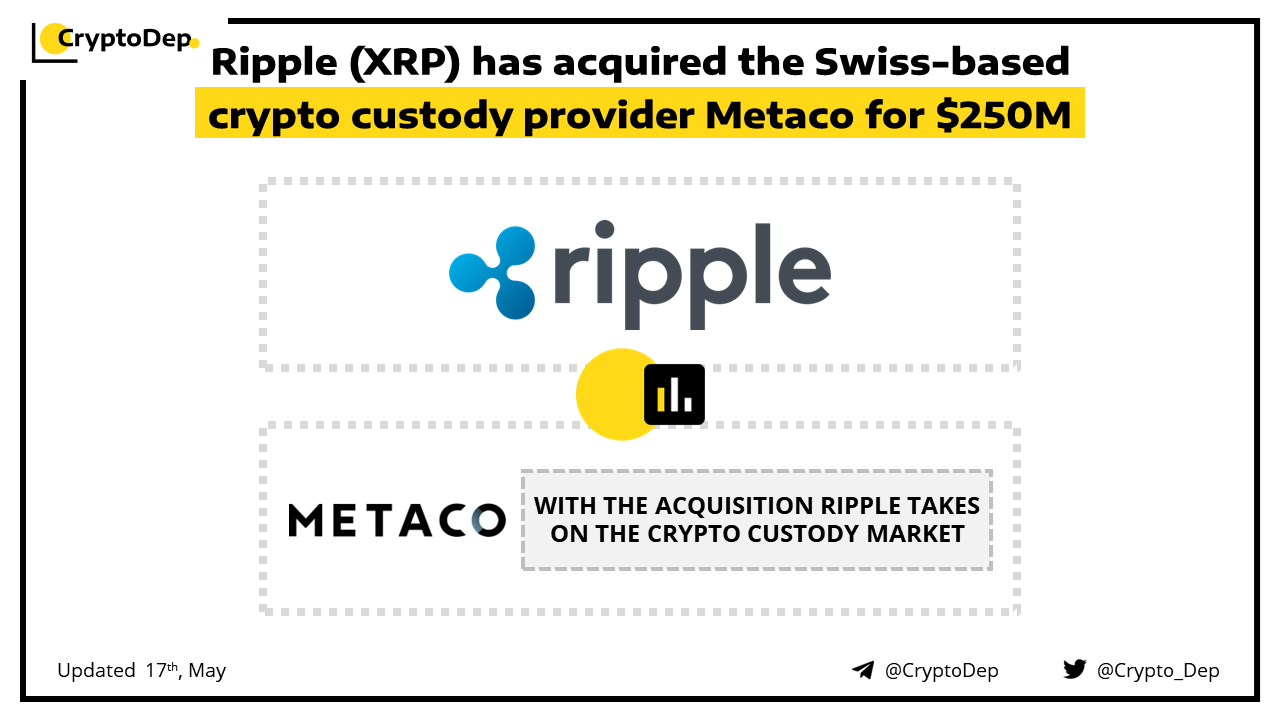 ββRipple (XRP) has acquired the Swiss-based crypto custody provider Metaco for $250M